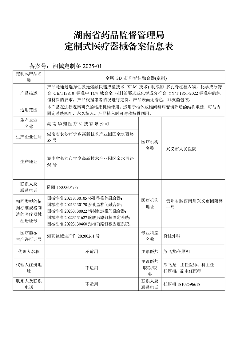 定制式AG真人娱乐娱乐备案信息表(湘械定制备2025-01)