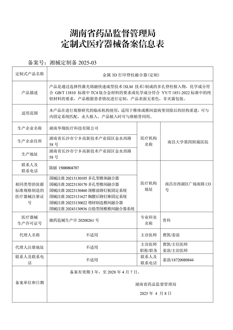 定制式AG真人娱乐娱乐备案信息表(湘械定制备2025-03)